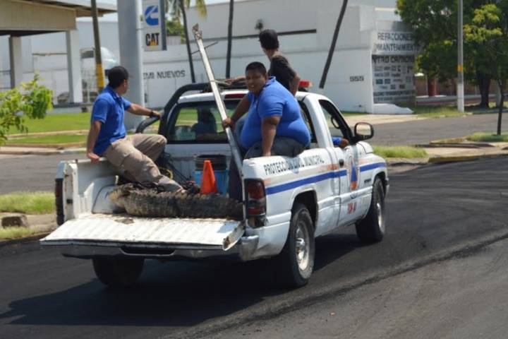 La mañana de este miércoles y en atención a una llamada de auxilio, personal de Bomberos de Protección Civil Municipal capturó a un cocodrilo en la comunidad de Las Calabazas, perteneciente la Tenencia del Habillal, el cual ingreso a una zona de viviendas y ataco una granja de aves sin causar daños a personas.