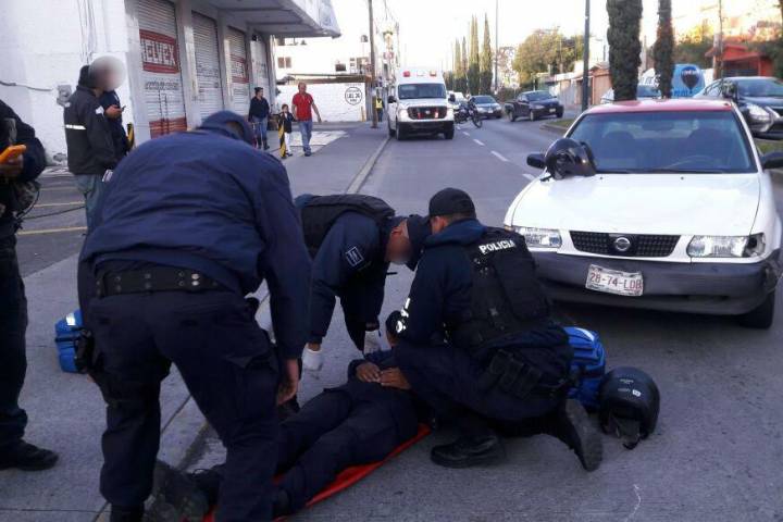 Un motopatrullero resultó lesionado después de ser embestido por un taxi en la Avenida Periodismo, en esta ciudad de Morelia, sitio al que llegaron los paramédicos del Grupo de Operaciones Especiales (GOE) para auxiliarlo y llevarlo a un hospital, se supo en la labor periodÃstica.
