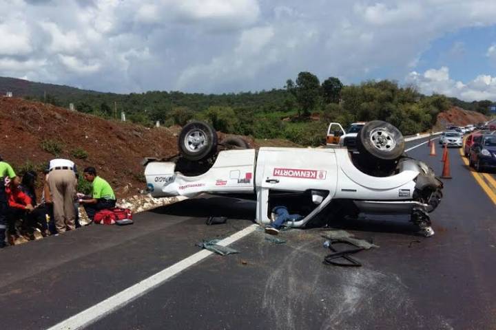 La tarde de este domingo, una camioneta con rótulos de la empresa de camiones Kenworth volcó sobre la autopista Siglo XXI, a consecuencia de ello hubo tres lesionados, los cuales fueron hospitalizados.