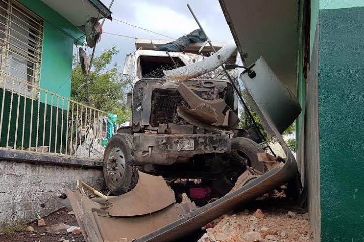 Un camión tipo volteo del Sindicato de Trabajadores de la Industria del Autotransporte (STIAT) aparentemente se quedó sin frenos en una pendiente y fue a dar contra la barda de una escuela y la derribó para terminar dentro del plantel, en el que causó varios daños, entre ellos a dos salones y a la dirección, según la información obtenida en el lugar de los hechos.