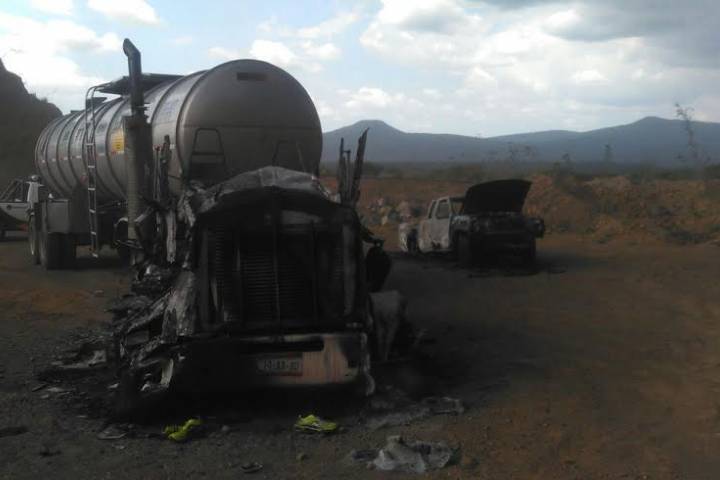 Cuatro vehículos calcinados, entre ellos dos pipas, fueron encontrados por lugareños, automotores que de acuerdo con fuentes allegadas al gobierno se presume eran empleados para actividades ilícitas.