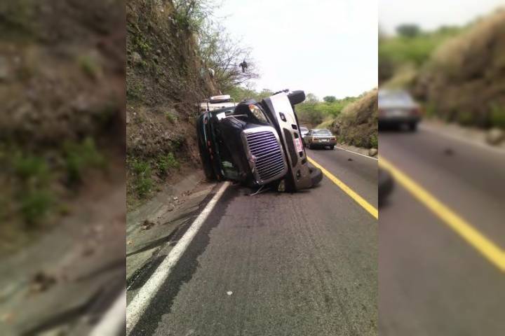 Un tráiler volcó en la carretera Nueva Italia-Uruapan, percance en el que únicamente hubo daños materiales, explicaron las autoridades de vialidad, mismas que remolcaron la pesada unidad de carga a un corralón.