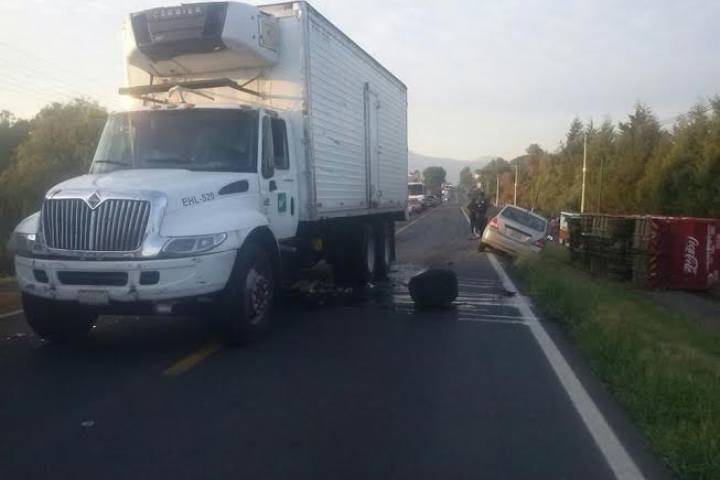 NOTICIAS 10/06/2016Choque carambola deja un camión refresquero volcado