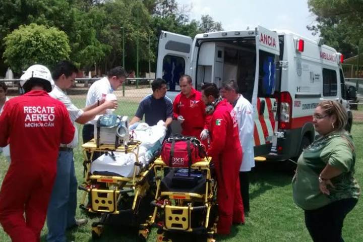Después de caer a un cazo caliente donde era preparado chicharrón, un niño de un año y 10 meses de edad quedó malherido, con quemaduras de tercer grado en el 45 por ciento de su humanidad, a decir de las autoridades de rescate, por lo cual fue subido a un helicóptero del gobierno del estado para ser trasladado a la capital michoacana.