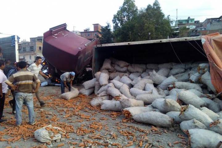 NOTICIAS 18/05/2016Vuelca tráiler cargado con 25 toneladas de zanahoria
