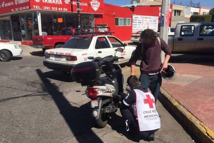 La mañana de este lunes una mujer y un joven que viajaban a bordo de una motoneta, resultaron levemente lesionados al ser impactados por un taxi cuyo conductor espero el arribo de las autoridades para que deslindaran responsabilidades.
