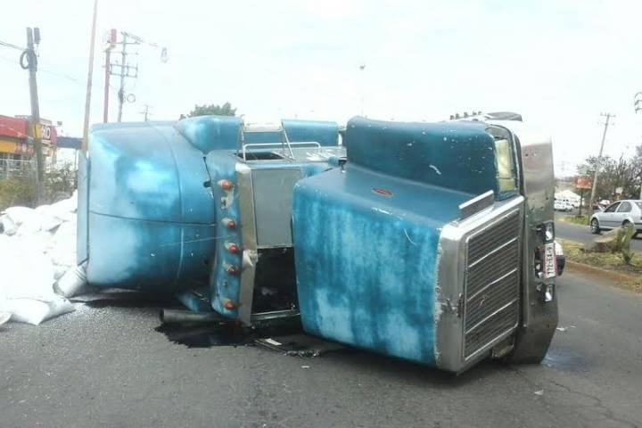 La volcadura de un camión dejó cómo saldo a los dos tripulantes de dicha unidad, levemente heridos, actualmente se encuentran estables de salud.