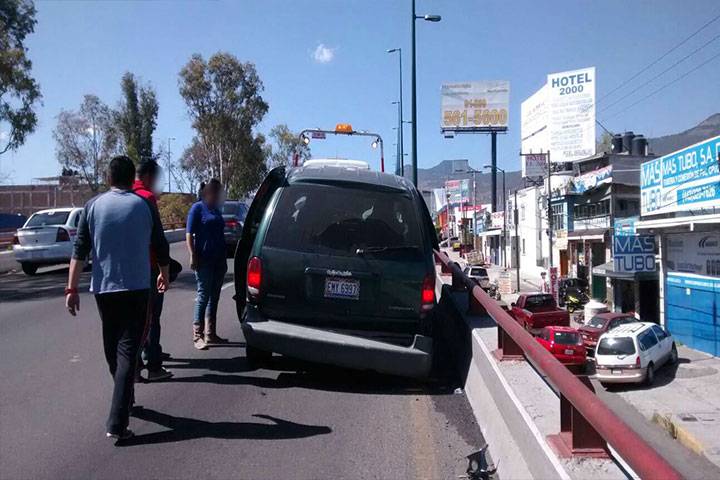 Un choque entre dos camionetas dejó únicamente daños materiales, suceso registrado sobre el puente vehicular del Libramiento República, frente al acceso a la colonia Solidaridad, en esta ciudad de Morelia, de acuerdo con los datos recabados en la labor noticiosa.