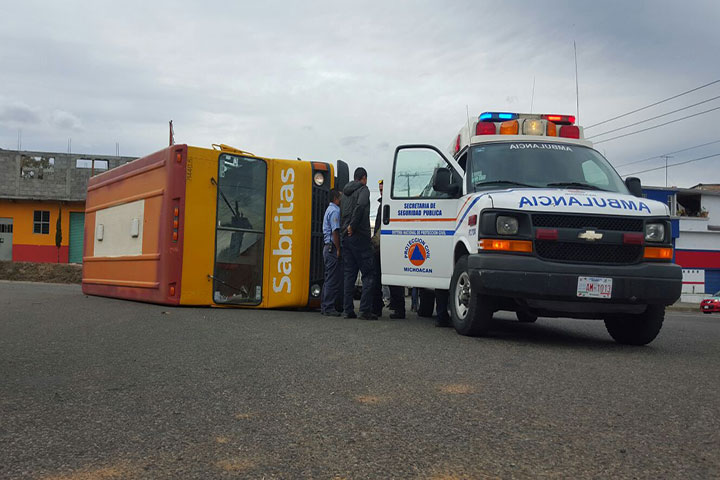 Una camioneta volcó y cayó de nuevo sobre sus cuatro llantas en la carretera Recinto Ferial-Morelia, en esta capital, con saldo de dos heridos leves, mismos que no requirieron hospitalización, de acuerdo con las autoridades de rescate.