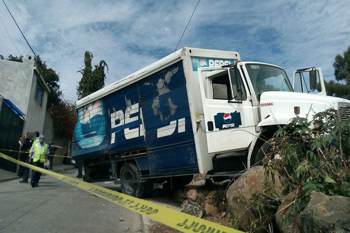 NOTICIAS 12/01/2016Se accidenta un camión de Pepsi al quedarse sin frenos