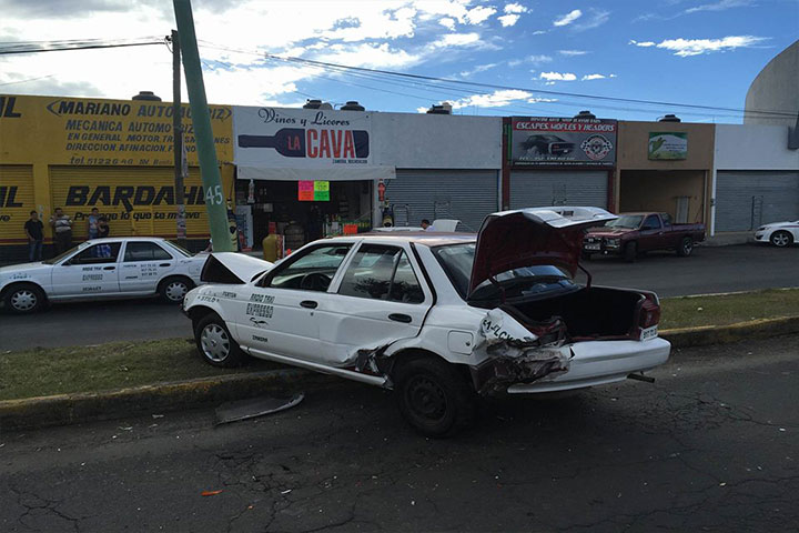 La tarde de este martes, el conductor de un taxi resultó lesionado, luego de que su unidad fuera impactada por un tractocamión y proyectada hacia un poste del alumbrado público en la Avenida Juárez de esta ciudad de Zamora.