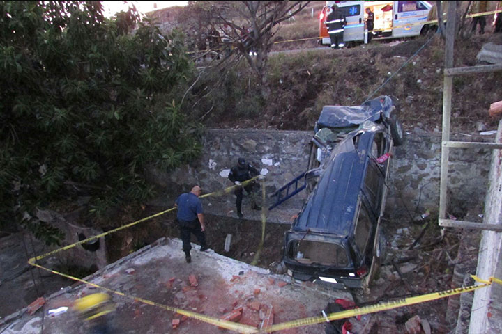 NOTICIAS 25/12/2015Camioneta se sale de la carretera y acaba en la azotea de una vivienda