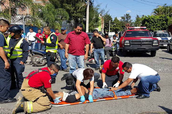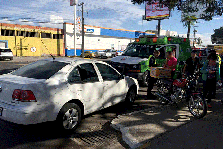 Un sexagenario que circulaba sobre la calle Ferrocarril en esta ciudad de Zamora, resulto con algunas lesiones luego de que al intentar ganar el paso a una camioneta, esta lo impactó, el chofer del automotor espero la llegada de las autoridades.