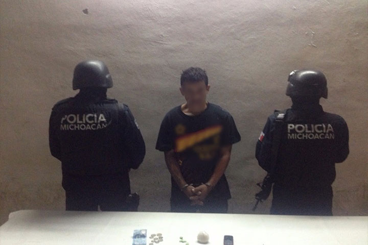 NOTICIAS 26/12/2015Detiene a un hombre con droga en ApatzingánMediante recorridos de inspección y vigilancia implementados por elementos de la Policía Michoacán en Apatzingán, se logró la detención de una persona a quien se le encontraron varias dosis de drogas sintéticas, además los oficiales aseguraron 15 motocicletas y dos autos por diversas irregularidades.