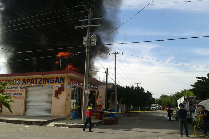 Daños materiales por varios miles de pesos dejó un incendio de grandes dimensiones en el establecimiento "Plásticos de Apatzingán", ubicado en la colonia Las Palmas de esta ciudad, emergencia que movilizó a las corporaciones de rescate, policiales y al Ejército Mexicano.