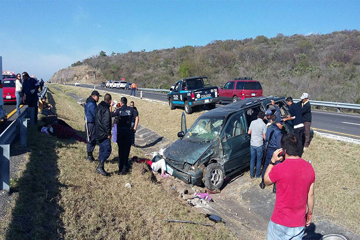 NOTICIAS 20/12/2015Una muerta y 13 heridos deja volcadura de una camionetaLa volcadura de una camioneta, a la cual se le tronó una llanta, dejó una mujer de la tercera edad muerta y 13 lesionados, todos ellos miembros de una familia avecindada en Moroleón, Guanajuato; seis de los pacientes fueron canalizados en tres helicópteros del Gobierno del Estado a recibir atención médica, trascendió en la cobertura del acontecimiento noticioso.