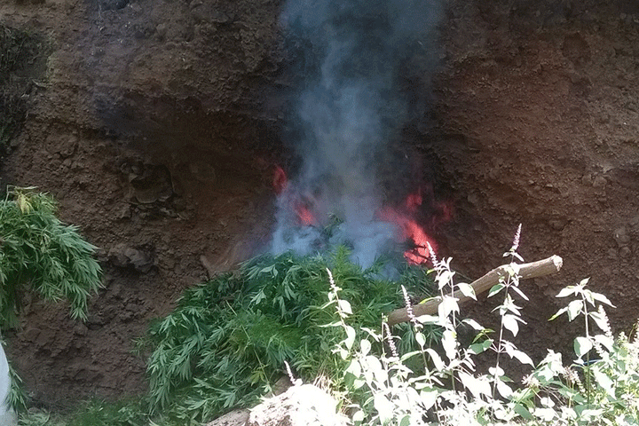 NOTICIAS 05/12/2015Destruye PGJE plantío marihuana y asegura dos campamentos en TangancícuaroDerivado de trabajos de investigación e inteligencia realizados por Personal de la Procuraduría General de Justicia del Estado de Michoacán se realizó la destrucción de un plantío de hierba verde con las características propias de la marihuana en el municipio de Tangancícuaro.