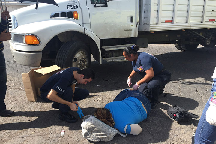Al mediodía de este miércoles una mujer fue impactada por un camión de carga, cuando circulaba en una motocicleta sobre la carretera Zamora ? La Barca, la fémina fue trasladada a un nosocomio mientras que el conductor de la pesada unidad fue requerido.