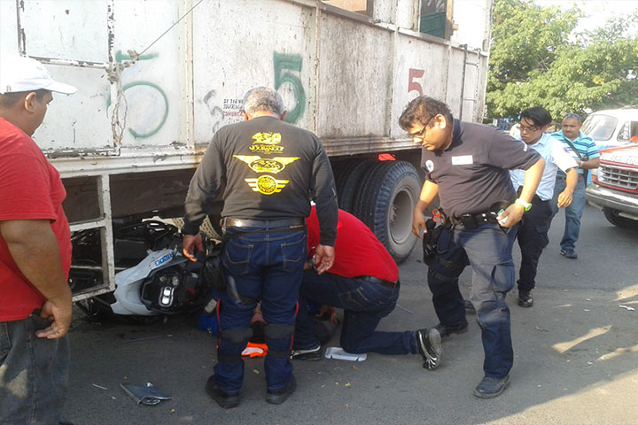 NOTICIAS 13/11/2015Queda herido motociclista en choque contra camión Un motociclista zacatecano padeció varias lesiones al colisionar contra un camión recolector de basura, accidente ocurrido sobre la carretera Apatzingán-Aguililla, a escasos metros de la glorieta de Chandio.