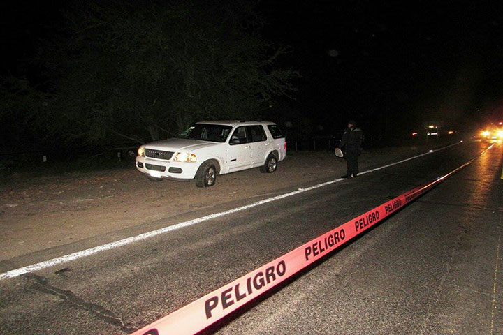 Un joven murió acribillado a balazos de fusil AK-47 y su cuerpo quedó en el asiento del chofer de una camioneta, misma que tenía múltiples impactos en la carrocería. La Policía detuvo a dos presuntos "halcones" (informantes), quienes se determinará si están involucrados en este asunto o no, dieron a conocer los representantes de la ley.