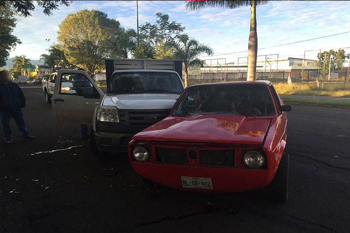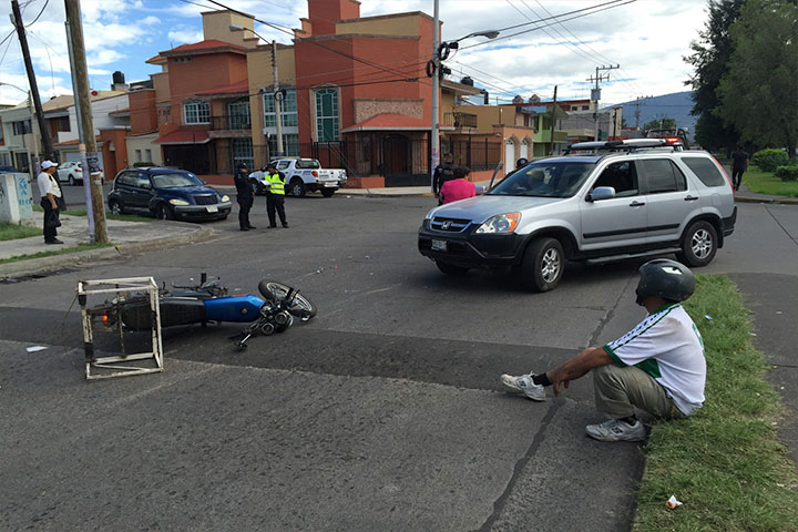 Tras haber impactado su motocicleta contra una camioneta que según algunos testigos intentó ganarle el paso, un hombre resultó lesionado por fortuna no de gravedad.