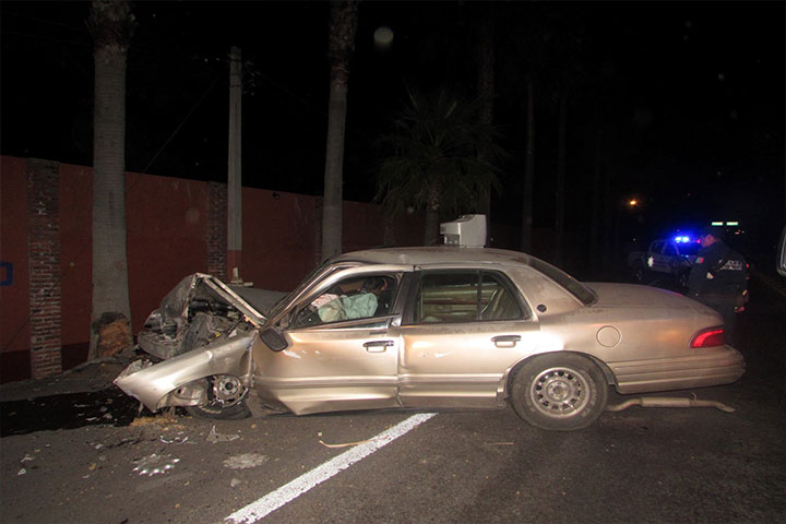 NOTICIAS 02/10/2015Automóvil se estrella contra una palmera, chofer queda malherido