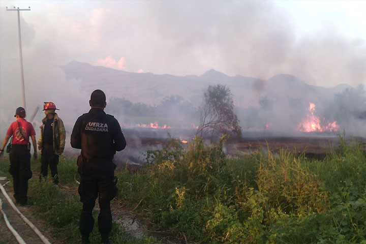 Bomberos locales consiguieron apagar un fuerte incendio que duró aproximadamente dos horas, mismo que se registró la tarde del pasado viernes en unos pastizales muy cerca de dos gasolineras, un hotel y un minisúper, según se conoció en la cobertura noticiosa.