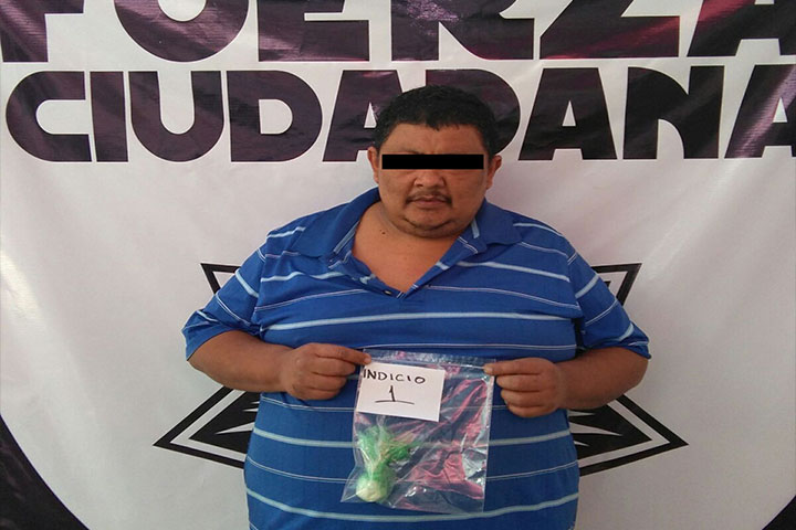 Un hombre que traía en su poder una pequeña bolsa que contenía de la droga conocida como crystal fue detenido por la Fuerza Ciudadana, siendo puesto a disposición de la representación social.
