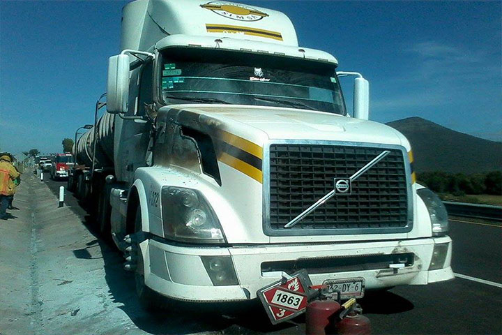 Un camión tipo pipa se incendió, se desconoce el contenido que transportaba, pero por fortuna no hubo lesionados.