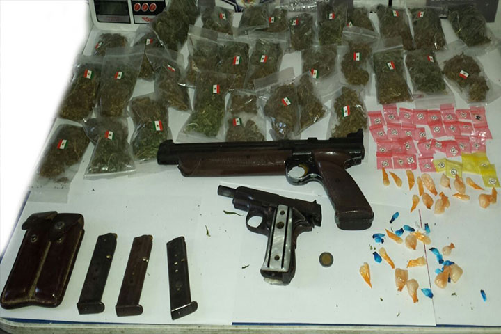 Personal de Fuerza Ciudadana de este puerto de Lázaro Cárdenas, lograron durante un recorrido de vigilancia la detención de un par de sujetos a quienes se les aseguraron diversas cantidades de droga y un arma corta.