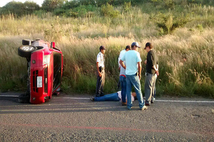 Una mujer que volcó en su vehÃculo quedó atrapada dentro del mismo, por fortuna las heridas que sufrió no ponen en riesgo su vida, a decir de los médicos. Ella fue auxiliada por los policÃas rurales, se supo en la labor reporteril.