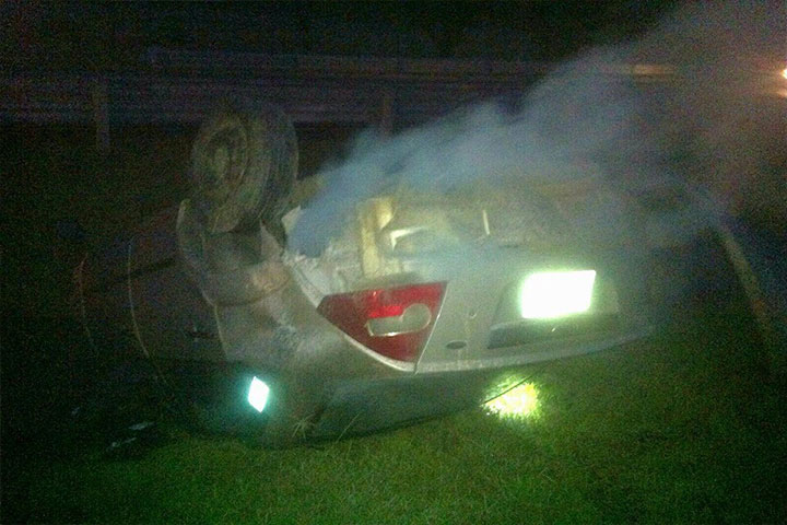 NOTICIAS 18/09/2015Automóvil vuelca y se incendia