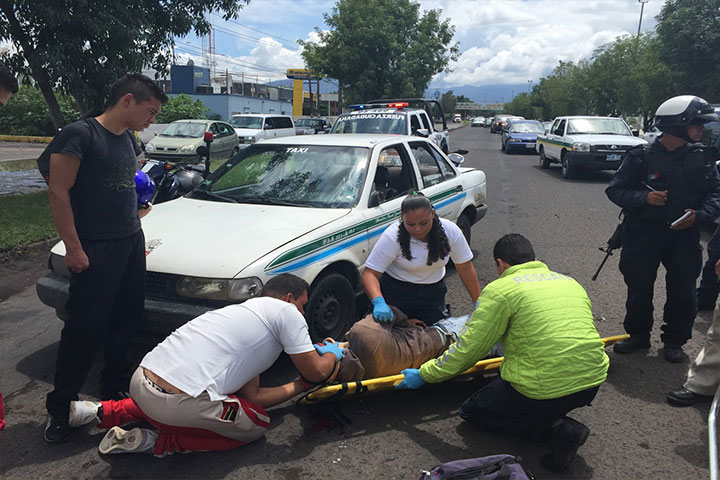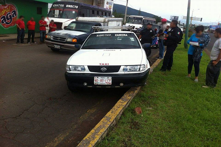 Un ciclista resultó lesionado al ser embestido por un taxi, en la avenida Madero Norte esquina con la calle Dren Desagüe del Valle, de esta ciudad de Zamora.