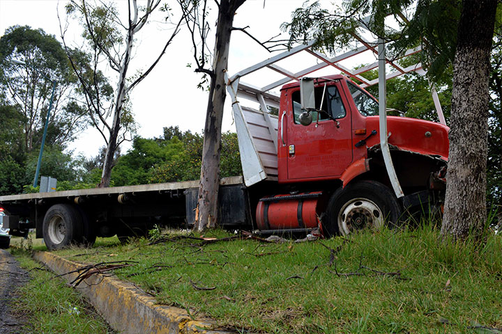NOTICIAS 17/09/2015Camión se queda sin frenos, se impacta contra un árbol