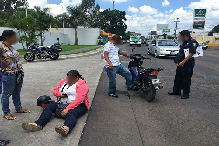 Una mujer resultó lesionada, luego de que su motocicleta se impactara contra un automóvil.