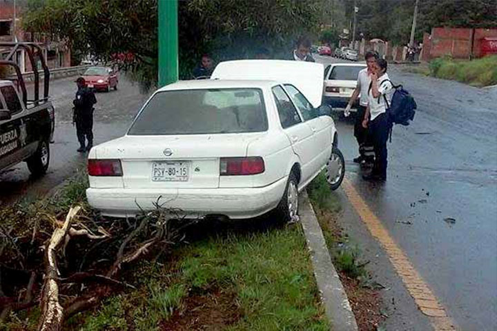 Un vehículo se salió de control, se trepó a un camellón y se estrelló parcialmente contra un poste de alumbrado público, sin que afortunadamente hubiera lesionados, únicamente daños materiales.
