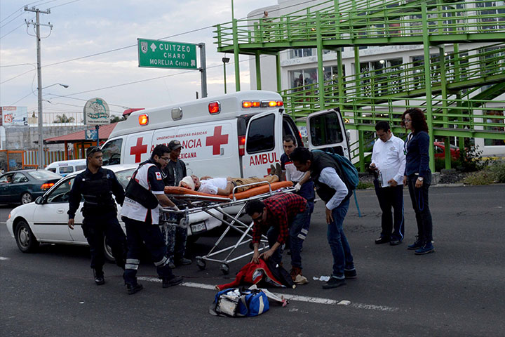 El accidente se registró aproximadamente a las 07:00 horas de este miércoles, en la Avenida Constitución de 1814 a la altura de la Escuela Preparatoria Adolfo Chávez, ubicada en el centro de esta ciudad de Apatzingán.