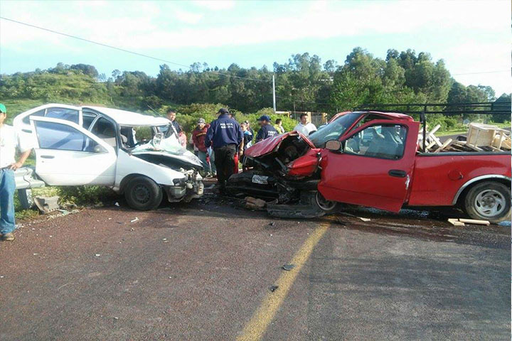 Un encontronazo de frente entre una camioneta y un auto dejó como saldo dos lesionados, en la carretera libre Pátzcuaro - Erongarícuaro.