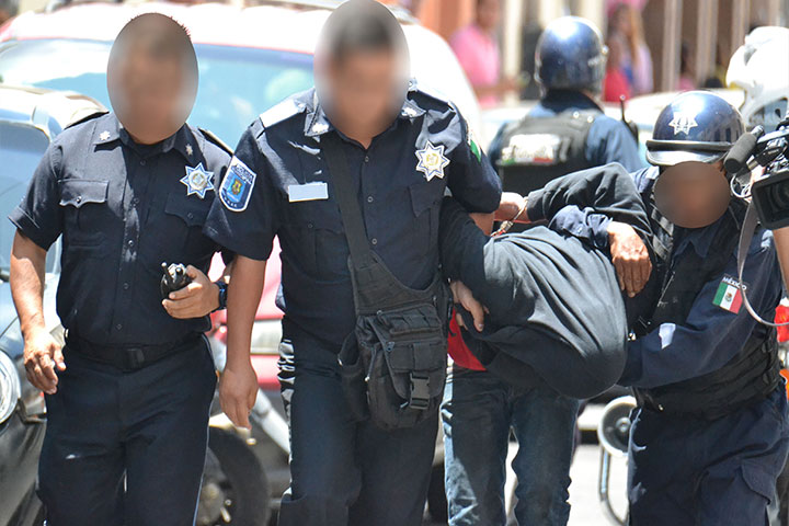 Dos personas del sexo masculino que acababan de asaltar una tienda de artículos para motociclistas, fueron detenidas por elementos de la Dirección de Seguridad Ciudadana adscritos al Mando Unificado, luego de una persecución realizada en las calles aledañas al mercado Nicolás Bravo, en el barrio de Santo Niño.