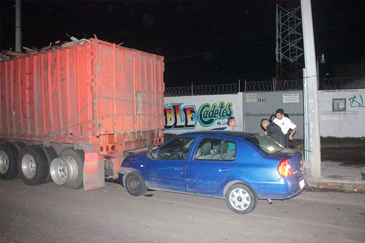 Daños materiales dejó el choque de un auto compacto contra la parte trasera de un camión cargado con chatarra metálica, el cual estaba estacionado a la orilla de la lateral del Periférico República.