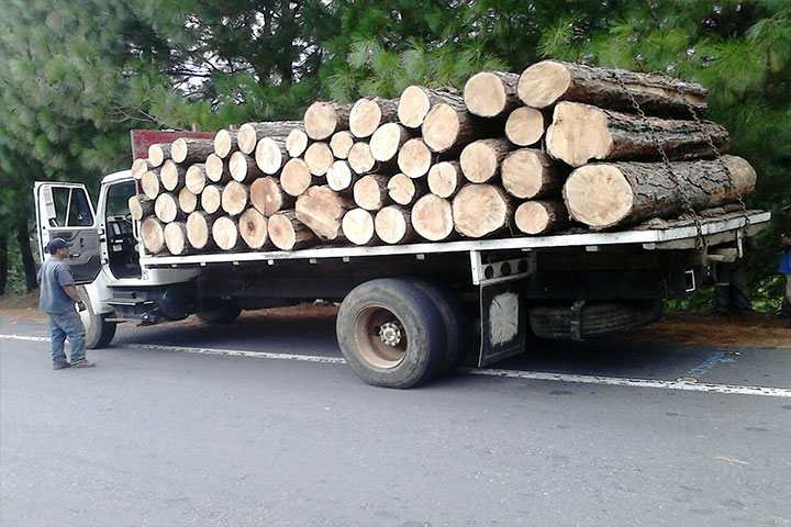 Dos hombres fueron detenidos con un cargamento de 51 rollos de madera de pino.