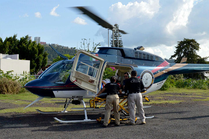 La tarde de este jueves el vehÃculo aéreo propiedad de la PGJE aterrizó en el helipuerto del Hospital de La Mujer, de esta capital, procedente de la ciudad de Sahuayo.