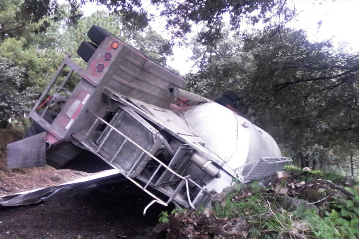 Dentro de una área pantanosa del Lago de Cuitzeo quedó parcialmente sumergido un tráiler, así como los dos contenedores que remolcaba, esto tras abandonar accidentalmente el camino y derribar una banda metálica de contención perteneciente a la Autopista de Occidente.