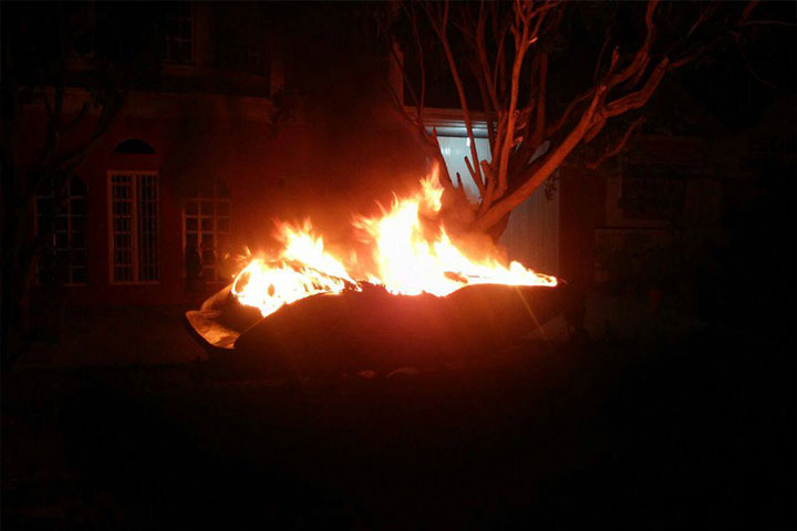 El incendio ocurrió alrededor de las 05:00 horas de este domingo, afuera de la casa ubicada en la calle Granaditas esquina con Juana Pavón, de la colonia Palmira de esta ciudad de Apatzingán.