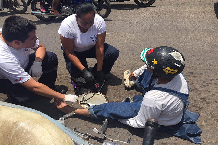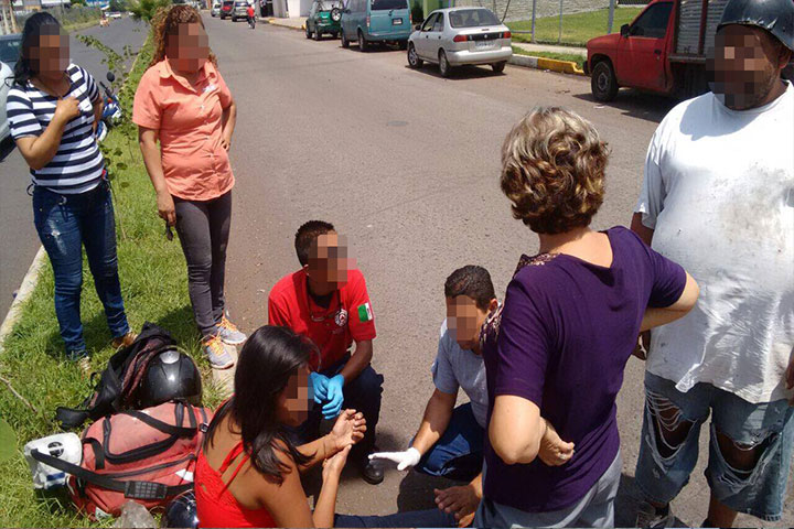 Al mediodía de este sábado una jovencita que viajaba a bordo de su motocicleta resultó levemente herida al ser impactada por un automóvil, cuya conductora espero en el lugar del percance y solicito la ayuda de los cuerpos de emergencia para atender a la muchacha.
