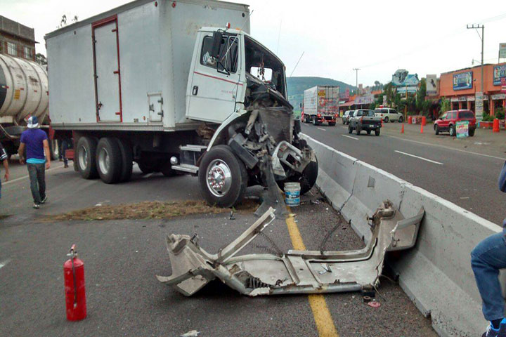 Un camión tipo torton chocó parcialmente contra una pipa cargada con combustóleo, que estaba aparcada a un lado del camino, y fue a dar contra un muro de contención que divide los carriles de ida y vuelta de la carretera Salamanca-Morelia. El chofer resultó herido.
