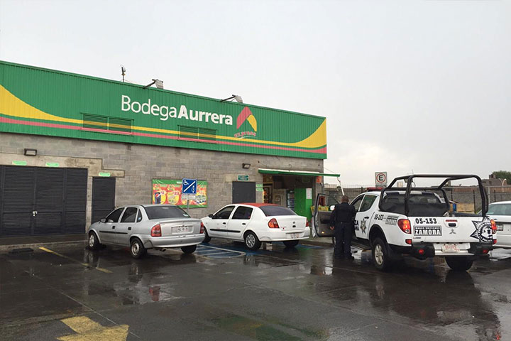 La tarde de este martes los empleados y compradores de una tienda de la cadena Bodega Aurrera Express se llevaron un gran susto cunado un encapuchado sujeto armado con una hacha, ingresó a las instalaciones del negocio y tras amenazar a los ahí presentes hurtó diversos artículos y dinero en efectivo para posteriormente huir con rumbo desconocido.
