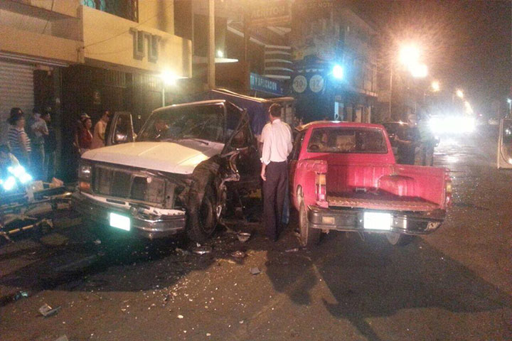 Un conductor que al parecer estaba ebrio chocó su camioneta contra otra unidad automotriz y resultó herido, al igual que el otro chofer, según se supo durante la labor noticiosa.