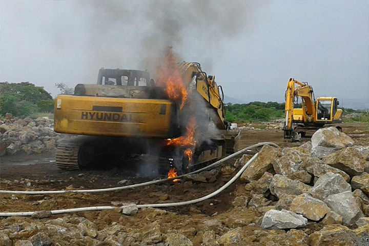 Una retroexcavadora se quemó parcialmente después de una falla mecánica, la situación no pasó a mayores, pues los bomberos intervinieron rápidamente.