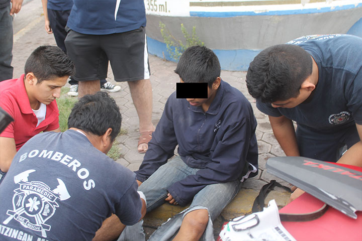 Primeramente los paramédicos atendieron cerca de las 13:00 horas a un joven que cayó de la motocicleta en la que viajaba, el herido fue identificado como Candelario R. de 22 años de edad quien se dirigía a su domicilio cuando a la altura de la esquina que forman l... Ver más...